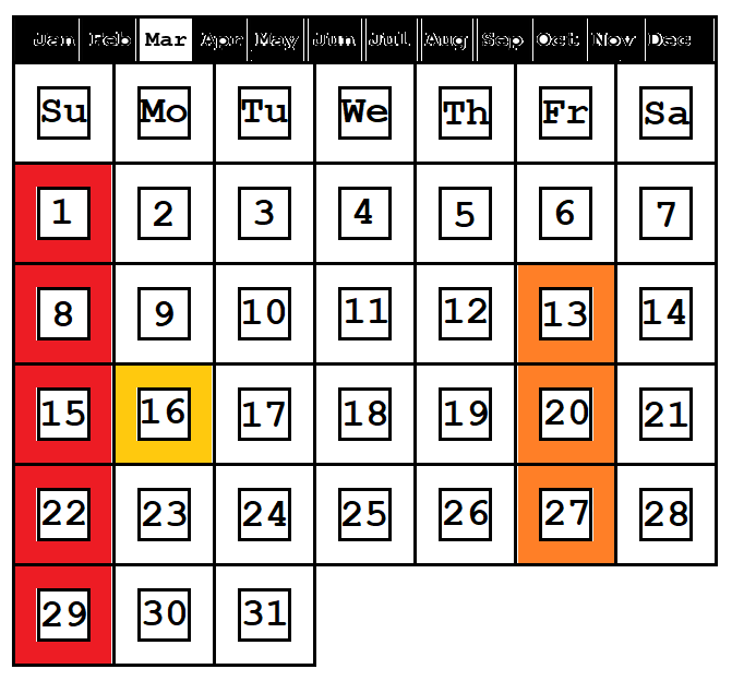 - 7, 14 and 21 March.